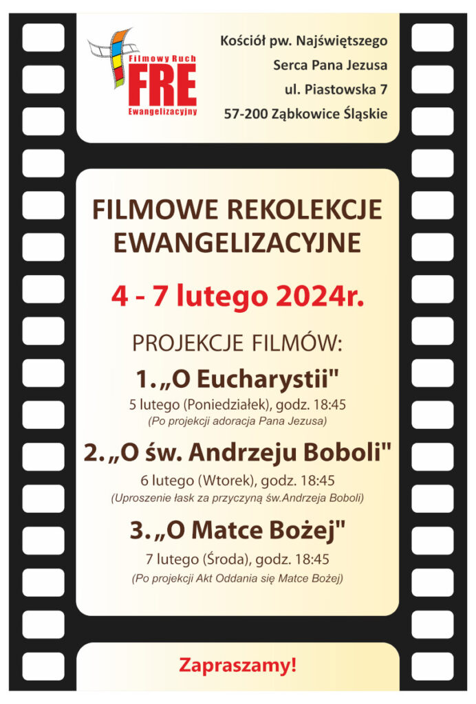 Zapraszamy na: FILMOWE REKOLEKCJE EWANGELIZACYJNE Kościół pw. Najświętszego Serca Pana Jezusa ul. Piastowska 7 57-200 Ząbkowice Śląskie W tym czasie…...