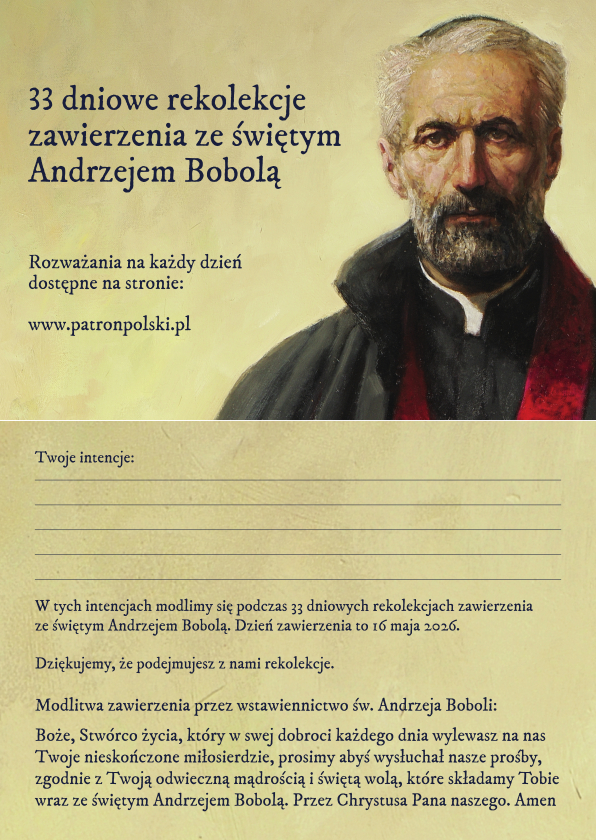W tych intencjach modlimy się podczas 33 dniowych rekolekcjach zawierzenia ze świętym Andrzejem Bobolą.